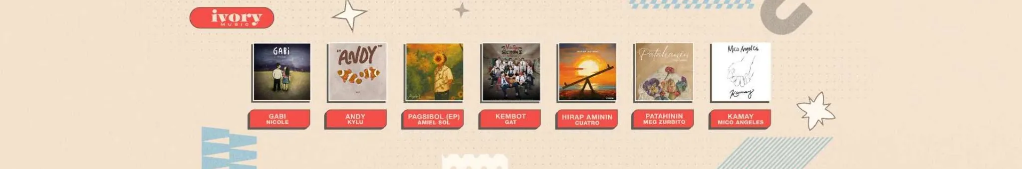 Ivory Music is one of the biggest independent record companies in the Philippines. Active in the industry for more than four decades, Ivory Music takes pride in having worked with OPM giants such as The Company, MYMP, Side A, Wolfgang, Orient Pearl, Roselle Nava, and April Boy Regino to name some; as well as contemporary hit artists such as Maja Salvador, Silent Sanctuary, Abra, among many others. Ivory Music also represents a new breed of music artists which includes Amiel Sol, Kylu, Meg Zurbito, Pipah Pancho, Zildjian Parma, Mico Angeles, Ganny Brown, Memento Mori and alternative bands; Ferodina, Quaderno, SouthNova St., Invictus, Back by 9ine and Sizzling Halo-halo.