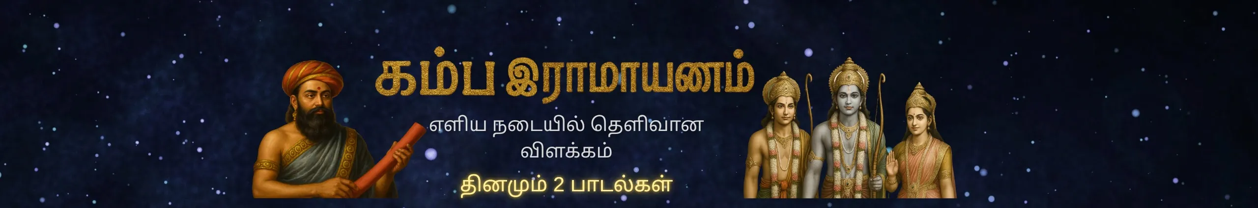Visit karpanai.in for more! This channel is a heartfelt tribute to the Kamba Ramayanam—an epic that shines as a crown jewel of Tamil literature. Created with love and dedication, this is my personal journey through Kambar’s six Kandams and over 10,000 verses of classical Tamil poetry. Each verse is explained in simple, spoken Tamil to bring out its poetic beauty, cultural richness, and spiritual depth—making it accessible to Tamil speakers of all ages, wherever you are in the world. Whether you're in India, Sri Lanka, Singapore, Malaysia, Canada, the UK, or elsewhere—if you cherish Tamil heritage or want to explore ancient Tamil wisdom, this channel is for you. If this journey speaks to your heart, please Like (👍), Share (↗️), and Subscribe (✅). Let’s rediscover the world of Kambar’s timeless poetry—together.