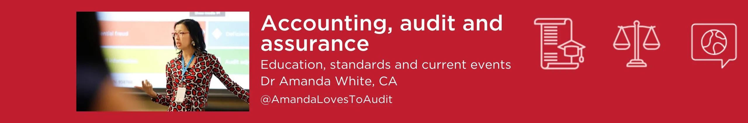 I'm a Senior Lecturer in assurance and auditing services - here you'll find videos of diagrams and explanations I use in my classes, interviews with people in the accounting profession and study hints and tips. In 2020 I won the AAUT Teaching Excellence Award for Law, Economics, Business and related studies - ranking me as the best university educator in those disciplines. Helping students learn about accounting, auditing and develop a career in the accounting profession is my passion!