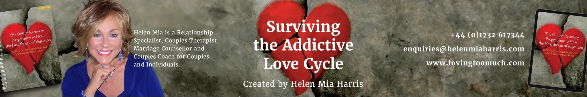 My name is Helen Mia Harris and for more than 25 years I have helping men and women who suffer love withdrawal, jealousy, heartbreak and the painful effects of rejection, separation anxiety, insecurity, anxious attachment and abandonment. Are you feeling rejected or emotionally abandoned by your partner? Are you experiencing the painful symptoms of unrequited love? Or maybe you are experiencing jealousy, love withdrawal, insecurity or possessive love in your relationship? I KNOW with certainty and passion I can help you through this devastating and emotionally overwhelming time. I have successfully helped people overcome obsessive love, fear of intimacy, unhealthy relationships, insecurity, love & loss, abandonment, emotional abuse, narcissistic abuse, marriage conflict. I can help you too. Visit my website at www.lovingtoomuch.com for tools and support.