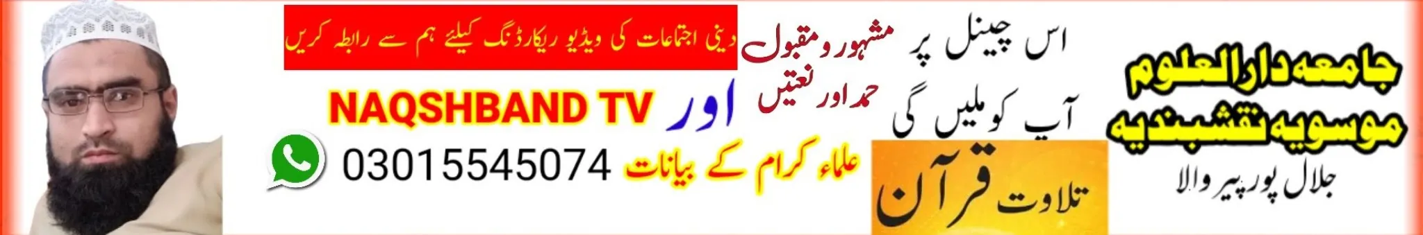 This is an Islamic YouTube channel. According to the previous order, videos of religious and reform gatherings and statements will be uploaded on this channel. In addition, videos of recitation of the Holy Quran, praise and naat will also be uploaded. If you want to upload to the channel, contact us on WhatsApp or Facebook page with the same name of the channel NAQSHBAND TV yeh aik islamic youtube channel hai is channel pe pehly ki Tarah deeni aur Islahi program tilawat e quran Hamd O Naat ki videos upload ki jain gi یہ ایک اسلامک یوٹیوب چینل ہے اس چینل پر سابقہ ترتیب کے مطابق دینی اور اصلاحی اجتماعات اور بیانات کی ویڈیو اپلوڈ کی جائیں گی اس کے علاوہ تلاوت قرآن پاک حمد و نعت کی ویڈیوز بھی اپلوڈ کی جائیں گی اگر آپ بھی اپنا کلام ریکارڈ کروا کر ہمارے چینل پر اپلوڈ کرانا چاہتے ہیں تو ہمارے ساتھ واٹس ایپ پر یا فیس بک پیج کو اسی چینل کے نام سے ہے اس پر رابطہ کر سکتے ہیں DISCLAIMER: This Channel DOES NOT Promote or encourage Any illegal activities, all contents provided by This Channel