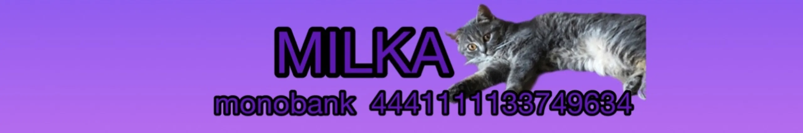Це канал про кицю Мілку. Традиція каналу - 🐈⬛💜. Мілка народилась - 2021р. 9 вересня. Ціль каналу - 1 000 000 підписників до 2025 року. Якщо у вас є бажання підтримати Мілку різними смачними ласощами та новими іграшками, то перераховувати сюди - monobank 4441111133749634
