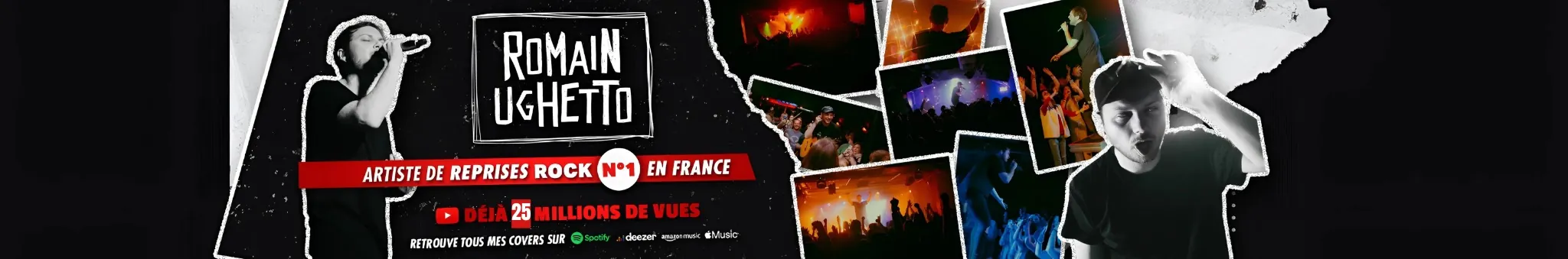 En quelques années seulement, Romain Ughetto s'est imposé comme l’artiste n°1 de reprises Rock en France. Avec une communauté de plus de 300 000 abonnés et près de 20 millions de vues sur YouTube, cet artiste Lyonnais est aujourd'hui à la tête du projet de reprises le plus suivi de l’Hexagone, lui valant ainsi le surnom de « Serial Cover ». Son projet et son spectacle, à la fois familial et divertissant, séduisent petits et grands. Au programme, des tubes incontournables : des années 80 / 90 / 2000, des hits actuels, sans oublier les génériques de dessins animés et les chansons de Disney… Vous connaissez tous ces titres, mais les avez-vous déjà entendus en version rock ?