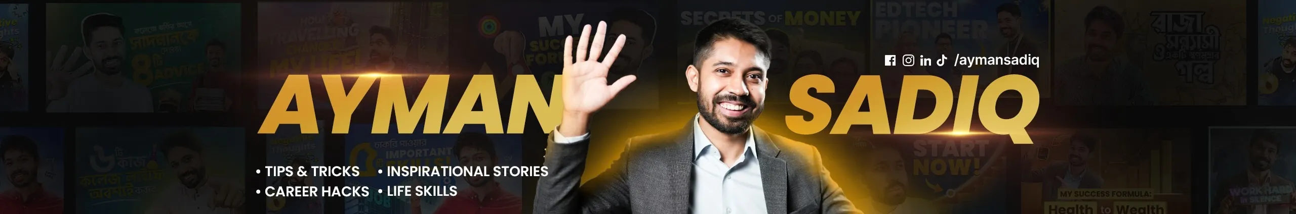 Work hard | Stay humble | Spread happiness | Make things happen | Cheers! π Assalamu Alaikum, Iβm Ayman Sadiq, the Founder of 10 Minute School, Bangladeshβs largest online learning platform. I am a teacher, author and speaker and fitness enthusiast by passion. π§βπ« Here, I share exam tips, communication hacks, digital marketing secrets, personal growth ideas & fitness hacks to help you grow and succeed. Letβs achieve greatness together! π You can check out: π My Courses: https://10ms.io/Ayman-Sadiq-01 π My Books: https://10minuteschool.com/store/categories/books-creative/ My Social Media: π Facebook: https://www.facebook.com/aymansadiq10/ π· Instagram: https://www.instagram.com/aymansadiq10/ π± TikTok: https://www.tiktok.com/@aymansadiq10/ πΌ LinkedIn: https://bd.linkedin.com/in/ayman-sadiq-bb249877 π¦ Twitter: https://twitter.com/ayman_sadiq π Website: http://aymansadiq.com/ See you in the next video. π #aymansadiq #examtips #studenthacks #facebookmarketing #communicationskills