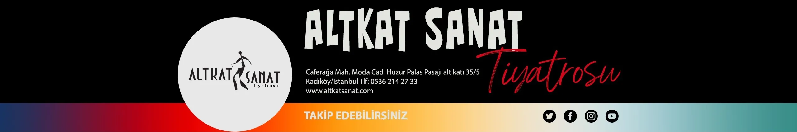 Altkat Sanat'ta hayal gücünüzün perdesini kaldırın! Hızla değişen dünya, tüketime dayanan ilişkiler bütünü ve tiyatro. Altkat Sanat, 2012 yılında böylesi bir tablo hüküm sürerken üretimlerde bulunmak adına kapılarını araladı. Sergilediği oyunlarla insan’ın dünü, bugünü ve yarınına ışık tutmayı amaçladı. Altkat Sanat bünyesinde Temel Tiyatro, Konservatuara Hazırlık, Pantomim, Gençlere Tiyatro eğitimlerinin yanı sıra Çağdaş Dans, Yaratıcı Yazarlık vb. başlıklarda sıklıkla workshoplar düzenlenmektedir. Sanatsal çaba, insan olmanın gereklerini yerine getirecek bir öğedir hiç kuşkusuz. Altkat Sanat, bu bilinçle hareket ederek, ‘insan’ı merkeze koyarak varlığını sürdürecektir. Size iyi bir deneyim kazandırmanın yanında, nitelikli alternatif tiyatroların oyunlarını da sizlerle buluşturmak niyetindeyiz. Diğer taraftan; tiyatro gruplarına, tiyatro provalarına ve kimi firma toplantılarına da ev sahipliği yapabilecek bir mekana sahibiz.