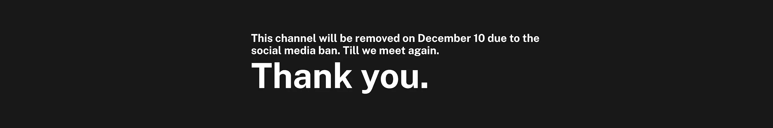 Till we meet again. This channel will be removed on December 10 due to the Australian social media ban.