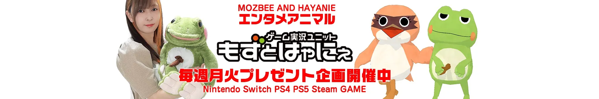 エンターテイメントを楽しみたい方!今すぐチャンネル登録を! もずとはゃにぇは、ポンコツゲーム女子🐤もずベエと、その保護者な実況がえる🐸ハヤニーによるVTuberの先駆けゲーム実況ユニットとして活動しながら「リアル顔出し+人形」というsakusakuスタイルでも活動している多彩なユニットです! ※生放送中によくケンカをしますがそういうプロレス(エンタメ)なので、それも一緒に楽しんでもらえると助かります! 🔻ゲーム好きな方へ ゲームメーカー協力の元、プレゼント企画を毎週開催中です! 🔻メーカーさんへ PR配信やプレゼント企画などをお受けしております。下記メールアドレスへお気軽にご連絡ください。 《公式実績》 2020年6月/「BitSummit外伝」で公式番組 2020年9月/「TGS2020」で公式番組 2021年9月/「BitSummit The 8th Bit」で公式番組 2021年10月/「TGS2021」で公式番組 2022年8月/「BitSummit X-Roads」で公式配信 2024年5月/「INDIELiveExpo 2024」で公式応援ミラー配信 2024年7月/「TOKYO SANDBOX 2024」で公式後夜祭配信 その他「Death Stranding」「シェンムー3」「NieR:Automata The End of YoRHa Edition」「ロマンシングサガミンストレルソング」「ライフイズストレンジ トゥルーカラーズ」「Atomic Heart」など、メーカー公式実況も配信。 《注意事項》 もずとはゃにぇは許可のないミラー配信を禁止しています。 SS、動画キャプチャ、切り抜きなども許可のないものは禁止とさせていただきます。 ◆◇ 出演者 ◆◇ もずベエ…福岡の♀もず。天然、頭が悪い。風呂入らない。美人だけど残念すぎる干物娘。 ハヤニー…大阪の♂かえる。もずベエの非常食。タレント経験を経てカエルになる。 ハヤナカP...ハヤニーの中の人。昭和のおじさん。もずはゃのプロデューサー。