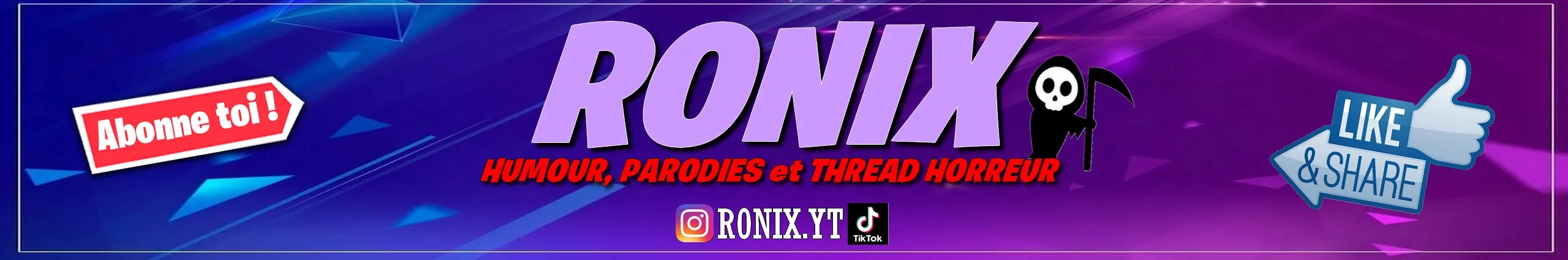 Une nouvelle vidéo tous les dimanche à 18h !!! REJOINS LE DISCORD OFFICIEL DE LA TEAM RONIX MON CODE CREATEUR EPIC GAMES: RONIXG INSTAGRAM : Ronix.yt TIKTOK : Ronix.yt Yop tout le monde, soyez les bienvenus au plus profond de mon univers impitoyable... Sur cette chaîne NO PAIN NO TARTINES ;) pas de prises de tête, du fun de l éclate et une petite touche d humour Ahahahah Passionne de jeux videos je proposerais de temps à autres des sessions de gaming rétro afin de vous faire revivre les jeux cultes de notre enfance à chacun et à côté de ça je vous proposerais divers podcast et petites parodies entièrement basée sur la deconnade... Amusez vous bien, marrez vous bien et à très vite KISS