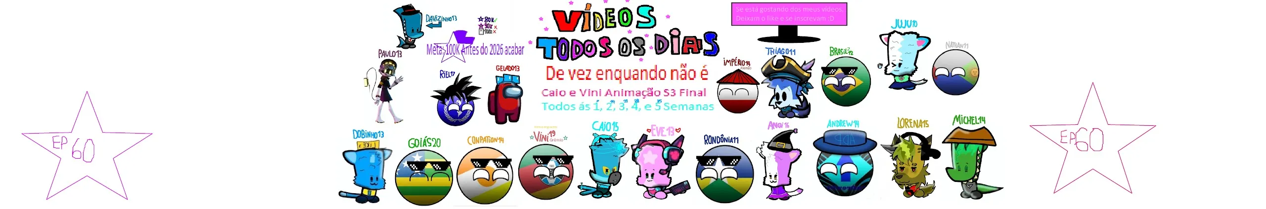 Olá Pessoal, eu sou o Caio, nesse canal eu faço Animações, Memes, jogos e etc, Meus Amigos são ❤️Eve13❤️, Vinigaúcho19, Rondônia11, Angi16, Conpation14, Riel17, Andrew14, Goiás19, Lorena15, Juju9, Dobinho13, Império Alemão14, Michel14, Gelado13, Paulo13, Thiago11, Gabriel13, Brasil12, Davi9. Minha idade: 15 Faço aniversário em 02/09 Comida favorita: Sanduíche Sou Autista Cor favorita: Ciano🩵 País: Brasil Altura: 1,65 Oc: Arara / Countryball do Brasil com cabelo e acessórios Jogo Favorito: Minecraft Classificação do canal: L, +10, +12 e +14. Séries começadas: Caio e Vini Animação 29/01/2023 (inventado) Gameplays 04/06/2023 Countryballs 18/06/2023 Meta: 90k de Inscritos e 100k antes do 2026 acabar