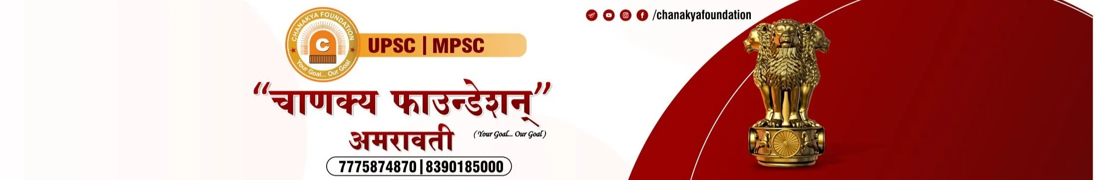 "Chanakya's Foundation" has been endeavouring in the field of competitive exams (UPSC & MPSC) with experienced faculties since last seven years. RESULTS 130+ Government Posts.We always create the best content for UPSC & MPSC aspirants with our moto....'your Goal...our Goal' Keep motivating us and giving us support. Director Milind R Lahe UPSC IAS Interviews 4Times Rajyasewa Interviews 3Times Experience 10Yrs+ Pub Adm Optional score 335 7775874870/8390185000 Thanking You Always🌄🙏