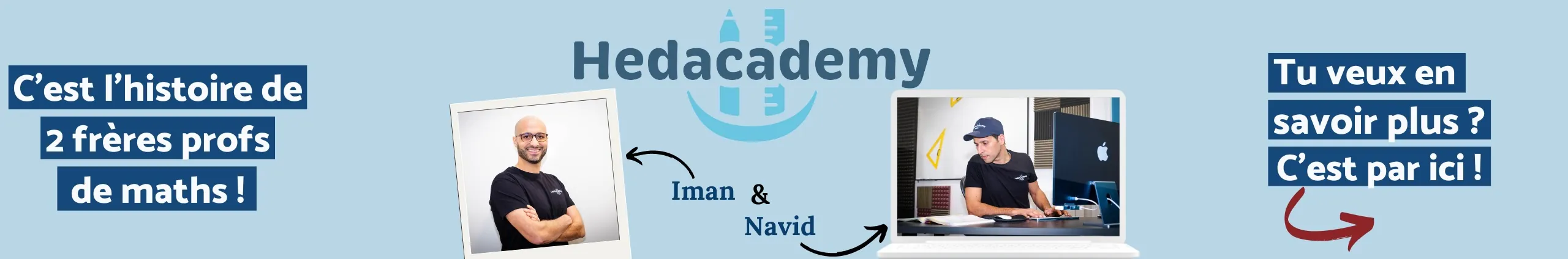 Nous sommes deux frères, Navid et Iman, tous les deux profs de maths et on a créé Hedacademy avec un seul objectif : que tu comprennes les maths... et avec le sourire 😁 Tu y trouveras différents types de vidéos : des vidéos de cours ou d'exercices types mais aussi des énigmes ou casse tête pour réfléchir de manière plus ludique. 🎯 Tu veux devenir solide en maths ? On a mis en place une plateforme révolutionnaire pour comprendre et progresser et devenir solide en mahts. On te fait comprendre chaque notion et on te pousse jusqu'à ce que tu la maîtrises en profondeur. et que tu sois serein avant le contrôle. Fais un tour sur notre site hedacademy.fr Contact: [email protected]