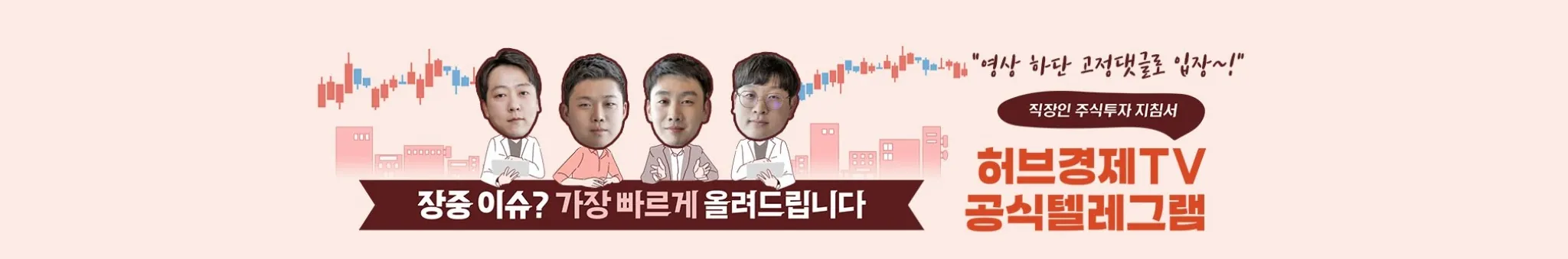 ※하단 링크로 국내주식 채널에 무료로 입장하실 수 있습니다 허브경제TV의 존재 이유는 사실에 입각한 분석을 전달함으로써 시장 투자자들의 ‘정보 비대칭성’을 최소한으로 줄이는 역할에 있습니다. 이러한 존재의 이유를 깊이 새겨, 단기적인 수익률을 위해 고위험테마에 투자를 권유하는 대신, 하방경직성이 높고 고배당 종목군, 모멘텀과 수급을 종합적으로 고려해서 중장기 투자 목적에 적합한 기업에 투자할 수 있도록 각고의 노력을 기울이겠습니다. 허브경제TV는 회원님들의 '자산증식'과 '편안한 노후생활'에 확실하게 기여하여 새로운 ‘주식투자 르네상스’ 시대를 열어나갈 수 있도록 하겠습니다. 우리의 이러한 노력들을 잘 지켜봐주시고 아낌없는 성원과 격려를 부탁 드립니다. - 허브경제TV -