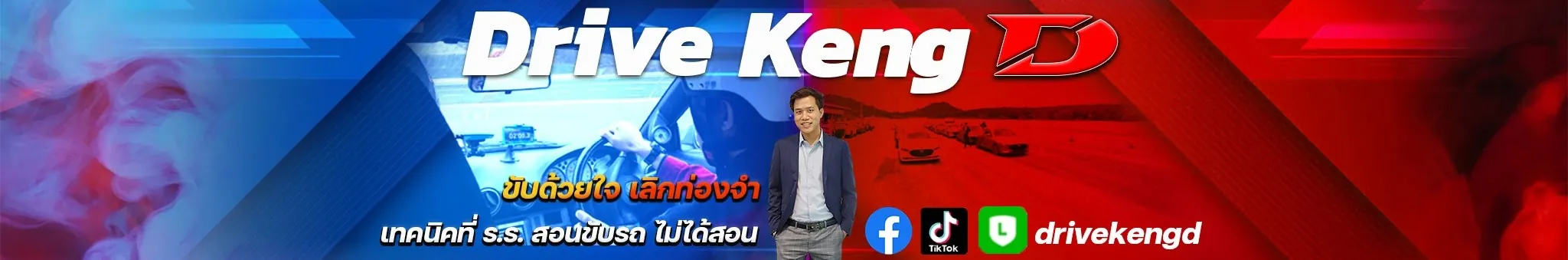 First and Original Private Driving Coach of Thailand ขับด้วยใจ เลิกท่องจำ โดย วิศวกรขับรถทดสอบ ผู้จัดงานและผู้ฝึกสอนด้านกิจกรรมขับรถทดสอบ ที่มีประสบการณ์การขับขี่ในสนามทั้งในไทยและญี่ปุ่น ติดต่อ ไลน์ออฟฟิเชียล @drivekengd หรือ Inbox (กล่องข้อความ) ของเพจเฟสบุค Drive Keng D เทคนิคการขับขี่ที่จะเปลี่ยนชีวิตไปตลอดกาล ความรู้และหลักการด้านการขับขี่ ไม่ควรถูกจำกัดไว้แค่คนในวงการ และในตำราอีกต่อไป ช่องนี้เป็นช่องที่สร้างขึ้นมาเพื่อ อยากให้ทุกคนได้รับความรู้การขับขี่ที่ถูกต้องตามหลักการวิศวกรรมด้านการขับขี่ เพื่อความปลอดภัย และการขับขี่ที่ดีขึ้น เพื่อเป็นส่วนหนึ่งในการช่วยลดสถิติการเกิดอุบัติเหตุของประเทศไทย