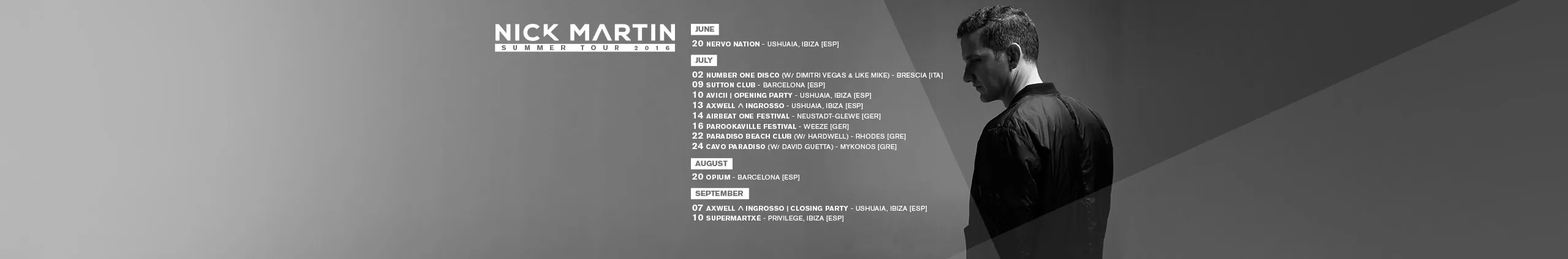 Nick Martin has been soundtracking your club experiences for two decades. Having DJed along superstars including The Chainsmokers, David Guetta, Alesso, Avicii, Axwell ^ Ingrosso and Hardwell, the Greek music-maker has spun his high-octane brand of beats in the finest clubs across the globe. 2017 is the year the Nick Martin takes it up in gear. He recently signed with Armada Music - home to Armin van Buuren and many more of the world’s elite dance music talent - and the first output of this relationship is his newest single, “Shackles” feat. Natalola. On the touring front, Nick is supporting multiple Grammy-nominated superstar dance act The Chainsmokers on their European winter tour. “I’m focused on making good music, playing bigger cities and cool events, and getting on the Chainsmokers tour as an opener is not only exciting but the exposure is going to be great. 2017 is going be an amazing year!”