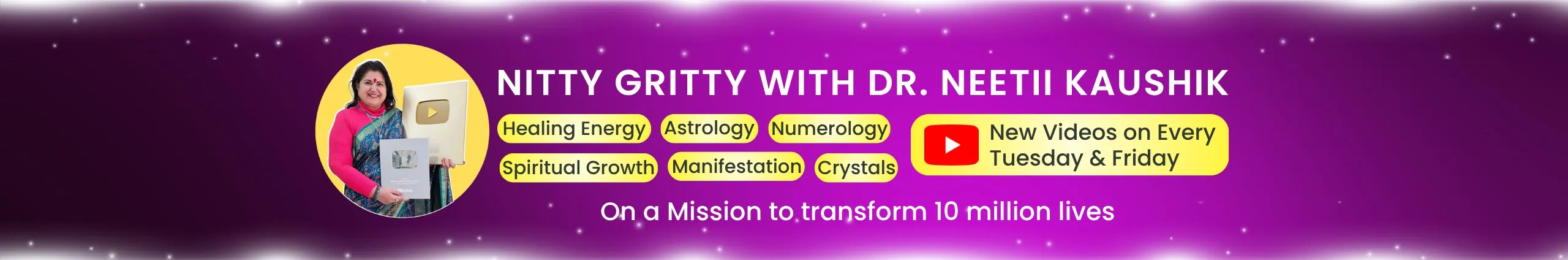 Welcome to a space created to guide you towards healing, self-discovery, and transformation. I, Dr. Neeti Kaushik, bring with me 35+ years of experience as an educationist, 30+ years in astrology & numerology, and 7+ years of dedicated practice in spirituality, manifestation, and crystal healing. This channel is where ancient wisdom meets practical tools, designed to help you live with clarity, balance, and abundance. Here, you’ll find 🌸 Astrology & Numerology Guidance for life mapping and clarity 🔮 Crystal Healing & Chakra Balancing for energy alignment 🌙 Moon Meditations & Manifestation Practices for emotional empowerment 📖 Journaling & Vision Board Techniques for self-reflection and growth 💫 Psychological & Spiritual Insights to help you navigate relationships, career, health, and personal well-being 📞 Calling Numbers • Support Team: +91-9667552119 • Crystal Support Team: +91-9810975633 📩 Contact Details • Email: [email protected] • Website: https://drneetikaushik.com/