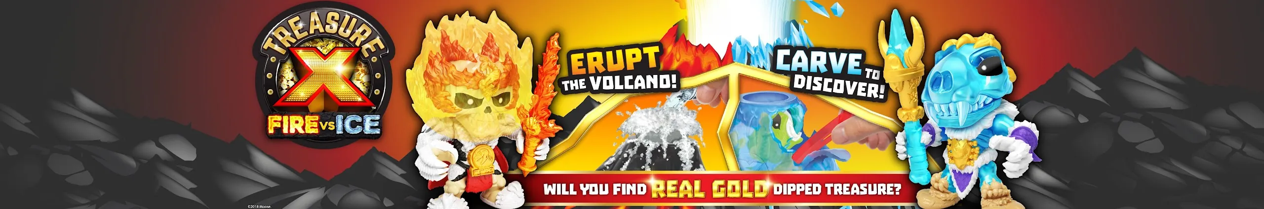 X marks the spot for a hunt like no other! Search for REAL Gold dipped treasure! Treasure X is an experience with 10 levels of adventure! Find the map and uncover a coin to locate which treasure you are searching for! Then use the digging tool to dig and chip away the rock to reveal the bones and weapons of your Treasure Hunter! Then find and open the chest, add water to fizz and reveal what's inside! Will it be real gold dipped treasure?