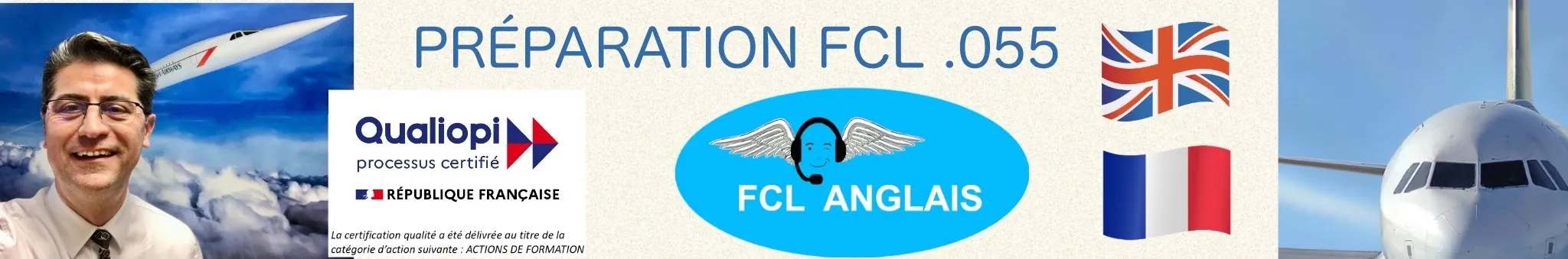 FCL ANGLAIS - https://www.fclanglais.fr - Language training, aviation English and French training online, DGAC FCL .055 preparation in French for pilots, LINGAERO test and airline pilot interview, Air France PSY2 prep, translation, proofreading - Radio communication training for pilots, preparation for EASA, DGAC OACI/ICAO levels in English, ICAO Level 6 preparation in French, as well as VFR or IFR level 4 and level 5 aviation French and English training online, FCL 055 preparation for pilots, translation, proofreading, French as a foreign language - Anglais aéronautique, formations pour pilotes aux communications radio en anglais et en français, préparation au FCL .055. https://www.fclanglais.fr/rdv/ for a FREE TEST or INFORMATION Contact: https://www.fclanglais.fr/formations-anglais-fcl-055/contact/ https://www.linkedin.com/company/fclanglais FCL ANGLAIS is a Qualiopi-certified training organisation: https://www.fclanglais.fr/formations-anglais-fcl-055/certificat-qualiopi/