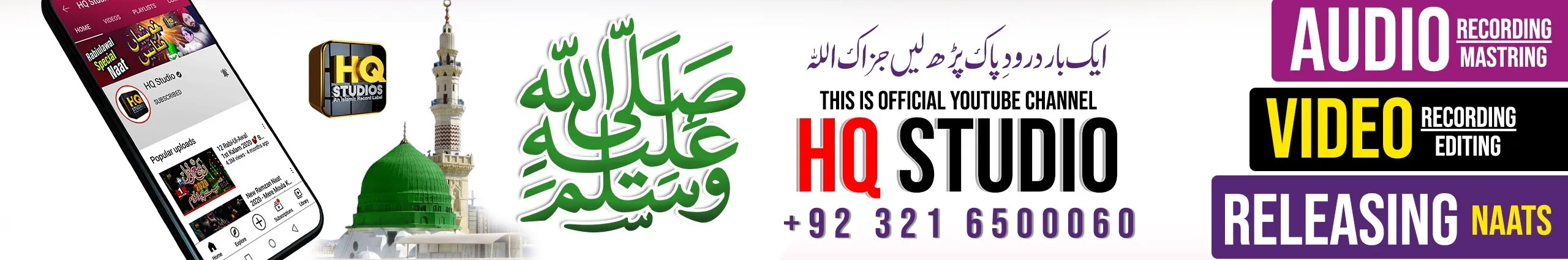 HQ Studio An Islamic Record Label. Conact For Recording +923216500060 All avenues of marketing and promotion are used to promote the artists and albums of HQ STUDIO Overview : HQ Studio is an islamic record label based in Lahore, Pakistan having a large range of Islamic content,dedicated to combine the values and spirituality of traditional Islam with the best of modern professionalism and convenience.It specialists in the creation, production and distribution of Islamic music and literature – both traditional and contemporary. Facilities: We have our own recording studios thereby significantly reducing production costs. We’ve also built an extensive network of contacts in the industry enabling us to have access to world class recording studios, sound engineers, producers, lyricists and musicians at a moment's notice. We do Audio & Video Editing Professionally.