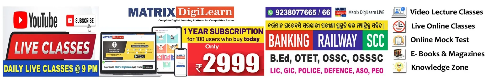 Matrix DigiLearn is a Unit of Matrix Competitive Point offer Online Coaching for Banking, Railway, SSC and other Competitive Exams preparations based on Live Classes, Digital Learning Mobile Application, Online Test and Digitalized Study materials. Digital teaching material supports self-learning and self-paced learning in the students. It enhances the interest levels and the retention power of the students. Critical concepts are also being developed and packaged using multimedia based digital solutions. Our Digital class is an effective Online Teaching solution adds more innovation to student’s already existing intelligent and excellent ideology. JOIN NOW Matrix DigiLearn- Best online coaching Center for Banking, Railways, ssc, ibps & other government competitive exams. Plot No- 2630/3, 1st Floor, Kedar Gauri Bihar Near Ravi Talkies Bhubaneswar, Odisha 751014 Ph:- +91 9238077665 Website:- https://matrixdigilearn.com/