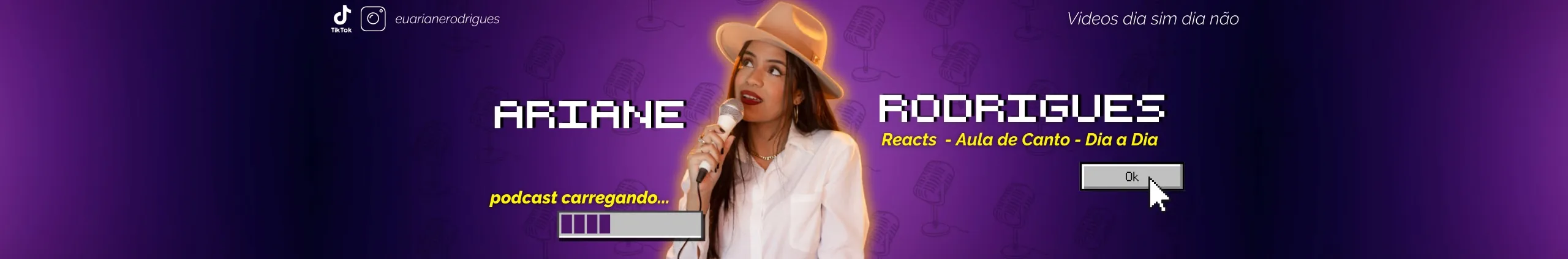 Fala galeraaa! Meu nome é Ariane Rodrigues e falo sobre música de forma interativa e divertida, dou aulas de canto com termos fáceis e lúdicos pra você entender de uma vez por todas como cantar. Temos vídeos sobre técnica vocal, imitações, playlists, tecnologia... E falo sobre o universo da música gospel no geral. Sejam bem vindos, temos vídeos todos os dias (exceto aos domingos) as 17:00h MAS CUIDADO, CONTEÚDO ALTAMENTE VICIANTE! HAHHA