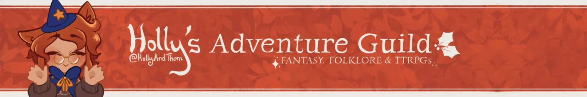 Hi, I'm Holly - Guildmaster here at the Adventure Guild with a focus on fantasy, folklore & TTRPGs! ⚔️ (If you're confused, I used to go by "Colacatinthehat" on here, I'm a retired Warrior Cats animator...) This is a place to relax, enjoy a world of fantasy and magic, and hopefully get caught up on quests! When I'm not helping heroes I'm also a video editor, illustrator & fulltime catgirl🌿 While I try to keep it friendly please keep in mind that myy content is intended for adult audiences and may contain mature language and themes 🔞