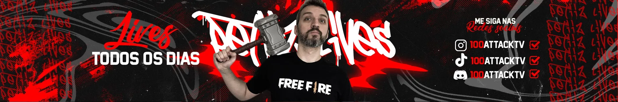 Olá eu sou o Petiiz, sempre gostei muito de jogos, resolvi dividir com vocês todos os games que acabo jogando! Hoje o foco do canal 100% Attack TV é em games mobile, com grande enfase no Free Fire! Tento sempre trazer um conteúdo divertido e bem humorado e sempre que possível inovando! Lives todos os dias em PETIIZ.LIVE redes sociais 100AttackTV