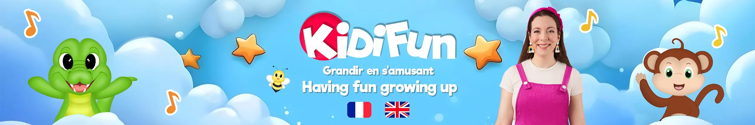 Chanter, danser, jouer, apprendre pour grandir en s’amusant ! Venez découvrir : 🎤 Des comptines et des chansons originales pour enfants ! 🇲🇫🇬🇧 Des vidéos éducatives pour apprendre le français et découvrir l’anglais. 🥁 De l’éveil musical pour initier petits et grands à la musique. ✂️ Des activités manuelles DIY pour développer la créativité et la motricité. 💛 Téléchargez toutes nos ressources et soutenez la création de contenus de qualité sur notre page Ko-fi ! https://ko-fi.com/kidifun Retrouvez toutes les chansons, activités et tutoriels classés par thème sur notre site : https://kidifun.fr/