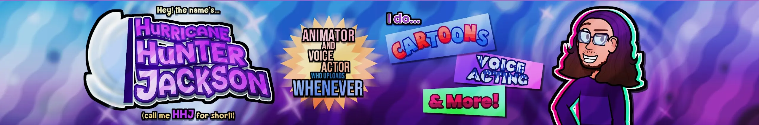 Hello, I'm HurricaneHunterJackson! You can just call me "Jackson" or "HHJ" for short though. I'm an animator, voice actor, writer, and artist! You probably know me best for my prominence in the object show community, primarily through my own show, Brawl for Object Palace! Besides that, I make different types of animated content, consisting of different shorts and web-toons (most of which are currently in development). If you're looking for a channel that hosts all kinda of cartoony content, you've come to the right place!