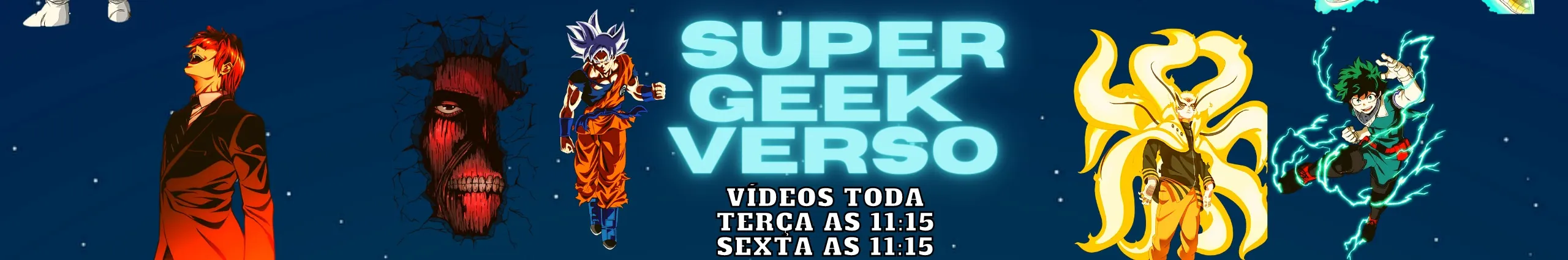 Nesse canal será produzido conteúdo do mundo geek/Nerd incluindo animes, series, filmes, mangás, cartoons. Agregando valor aos inscritos criando teorias, trazendo noticias em primeira mão do universo geek, fazendo reviews e analises de vários animes e filmes da cultura pop. conforme o crescimento do canal serão trabalhados quadros especiais que serão liberados a partir de metas que serão construídas junto aos inscritos. Principais conteúdos que serão abordados Naruto/Boruto, Dragon Ball Super, por isso é muito importante você se está inscrito no super geek verso.