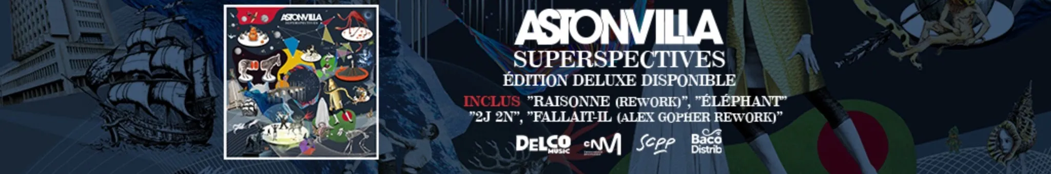 astonvilla est un groupe de rock français. Discographie 1996 "astonvilla" // 1999 "Extraversion" // 2001 "Live Acoustic" // 2002 "Strange" // 2005 "De jour comme de nuit" // 2008 "Live" // 2014 "Joy Machine" // 2024 "Superspectives" // 2025 "Superspectives (deluxe)"