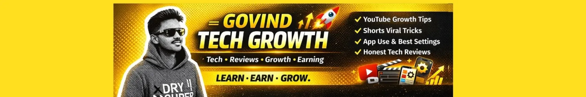 ✔ YouTube Growth Tips ✔ Shorts Viral Tricks ✔ Instagram & Facebook Growth ✔ Honest Creator Guidance Govind Tech Growth ek trusted Hindi YouTube channel hai jahan aapko milta hai: 📱 Electric Product Reviews – Mobile, Camera, Laptop & Gadgets 💻 Tech Tips, AI Tools & App Reviews 📈 YouTube Growth & Digital Skills ⚙️ App Use, Features & Settings Explained Is channel par hum: Mobile, camera, laptop jaise electric products ka honest review karte hain Apps ka sahi use, settings & hidden features explain karte hain YouTube & Shorts growth tips share karte hain Freelancing & online earning ke practical ideas batate hain 👉 Agar aap: ✅ Tech products buy karne se pehle sahi review chahte ho ✅ Apps ko proper settings ke sath use karna seekhna chahte ho ✅ YouTube se grow & earn karna chahte ho to Govind Tech Growth aapke liye perfect channel hai 🔥 📌 Subscribe karein aur Tech ke sath Growth karein! 🚀 📩 For collaborations & business: [email protected]