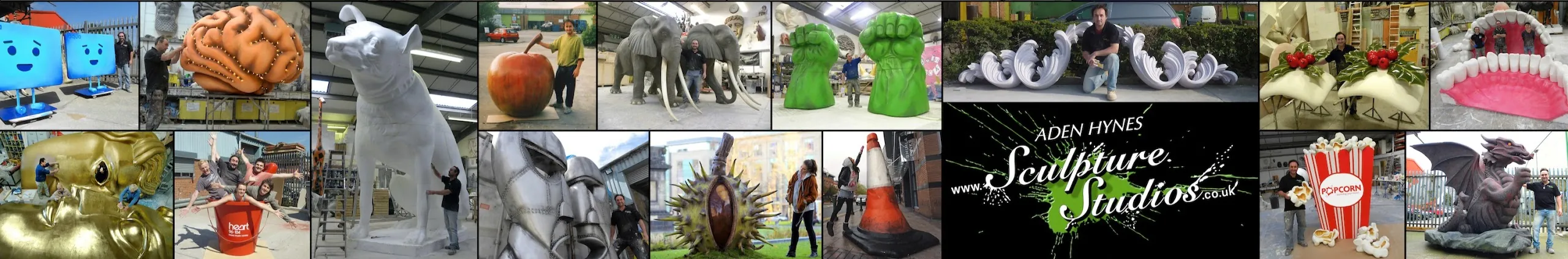 🌟 🚩 Become a Patron Supporter of our family run studio: https://www.patreon.com/join/aden_hynes_sculpture_studios Welcome to Sculpture Studios, your family run 3D commercial art company. Creating sculpture now for over 30 years, we undertake work of all size and all descriptions. We're a commercial based company, creating pieces for film, TV, theatre, personal art, and all other aspects of the promotional and advertising world. We pride ourselves on meeting deadlines and liaising with the client throughout. We see the work through to completion from concept to drawing, pattern making, prototypes, fibreglass mould making, production runs in GRP glass fibre, plaster, concrete, bronze finish etc, artwork, transportation and installation on site when required. See our extensive portfolio on youtube or on our main website, for the full extent of our project range.