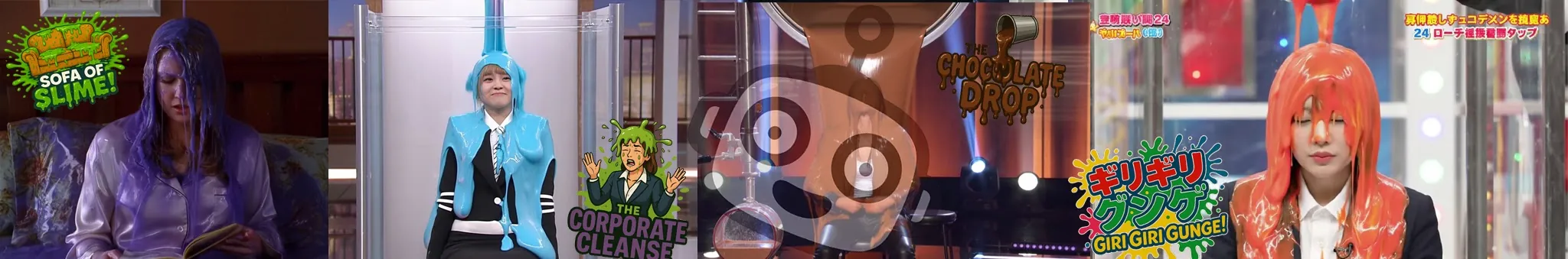 - aigameshowchannelgameshowmessyslimegungepiesWAMAIslapstick"japanese
