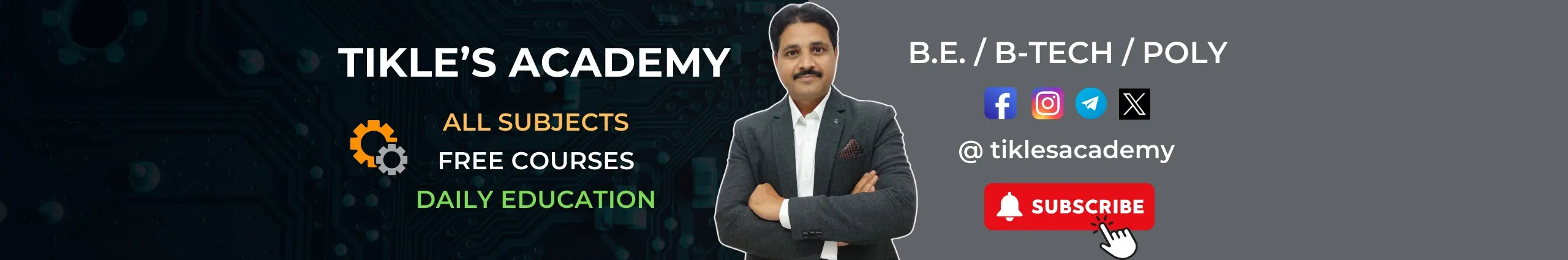 WELCOME TO "TIKLES ACADEMY" YOUTUBE CHANNEL. THIS CHANNEL PROVIDES ONLINE COACHING FOR ENGINEERING, POLYTECHNIC, B-TECH, BSC AND ITI STUDENTS FOR THE SUBJECTS.... • APPLIED MECHANICS • ENGINEERING MECHANICS • ENGINEERING GRAPHICS • ENGINEERING DRAWING • ELECTRICAL ENGINEERING • MECHANICAL ENGINEERING • CIVIL ENGINEERING AND MANY MORE.... PLEASE SUBSCRIBE THIS CHANNEL. ALSO PRESS THE BELL ICON TO GET ALL NOTIFICATIONS REGULARLY. PLEASE LIKE OUR ALL THE VIDEOS AND SHARE TO YOUR FRIENDS. IF YOU HAVE ANY DOUBTS REGARDING UPLOADED VIDEOS THEN YOU CAN COMMENT AND ASK. STAY CONNECTED AND PLEASE KEEP IN TOUCH. THANKS AND REGARDS. Email 1 : [email protected] Email 2 : [email protected]