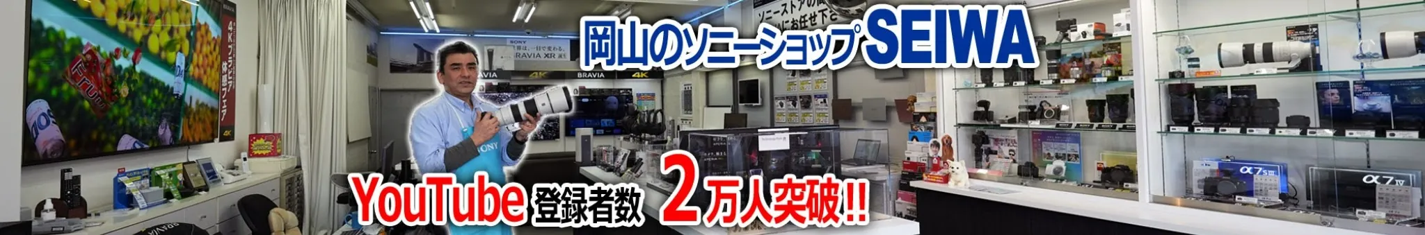 当店は岡山駅西口広場正面にあるソニーショップ SEIWAです。看板で大きく「SEIWA」とかいてありますので、スグわかりますよ。 お近くの方は、ぜひ当店に遊びに来てください。「ソニー商品・修理」の話が店員と気楽に出来るお店だよ! http://www.seiwaokayama.com/ 店長がソニー商品の良いトコ、悪いトコを動画にて説明しております。まだ動画初心者なのでヘタなのはご容赦ください。 沢山の方にソニー商品の素晴らしさを知ってほしくて、動画配信していきまーす。 全国のお客様へ ソニー商品購入の際は是非下記のソニーストアリンク先から購入してください。 当店の実績になります。ご協力宜しくお願いします。 http://www.seiwaokayama.com/storetop ソニーストアでは、新規会員登録すると誰でも10%OFFで購入できる「AV商品に使える10%OFFクーポン」付いております。 ログインすると、クーポンを使った割引価格でおトクにお買い求めになれます! http://www.seiwaokayama.com/date/2025/11/22
