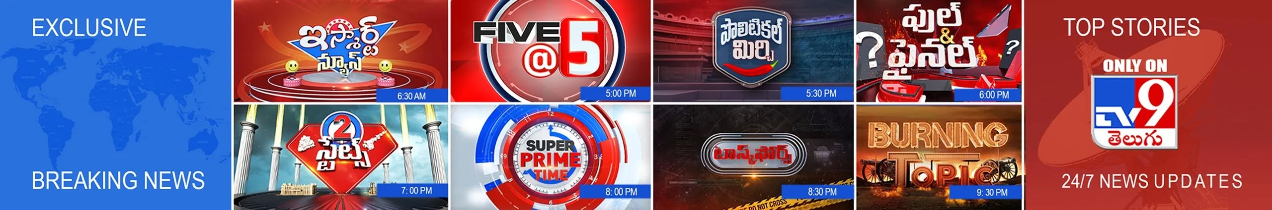 TV9 has over the years become the most watched, credible and respected news network in India. With its innovative style and investigative journalism, TV9 Telugu has been at the forefront of breaking important news stories as they take place in the world to its viewers.