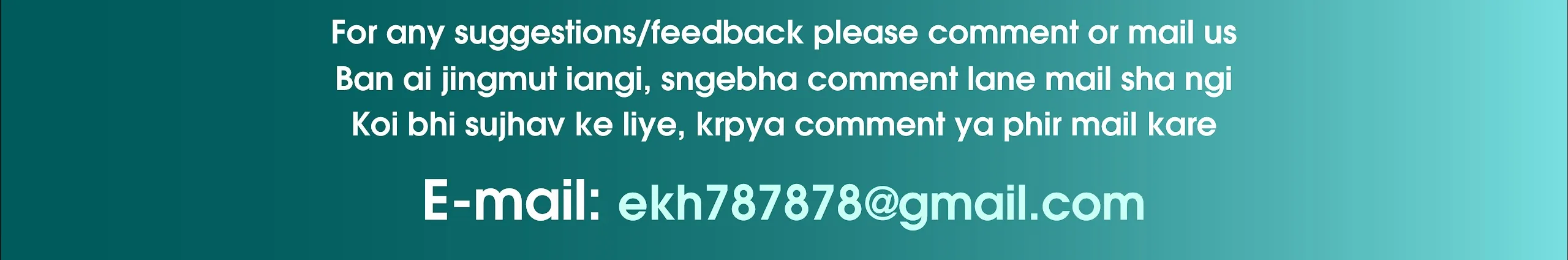 English, Khasi, Hindi words translations with examples Translation of ENGLISH words to KHASI then to HINDI, with EXAMPLES so that you can use them in day-to-day life conversation. Hopefully, this channel will be helpful for you :) For any suggestions/feedback please comment or mail us to: [email protected] Ka jingpynkylla ia ki kyntien ENGLISH sha ka KHASI bad sha ka HINDI ruh, lem bad ki NUKSA ba phin lah ban pyndonkam ha ki jingiakren ba man la ka sngi. Ngi ngeit ba phin ioh jingmyntoi lyngba kane ka channel. :) Ban ai jingmut iangi, sngebha comment lane mail sha ngi: [email protected] Shabdo ka anuwad ANGREJI se KHASI aur phir HINDI me uddhaharan ke sath, jise aap apne bat-cheet me istemaal kar sakte ho. Asha hai ki apko yeh channel upyogi lage. :) Koi bhi sujhav ke liye, krpya comment ya phir mail kare: [email protected]