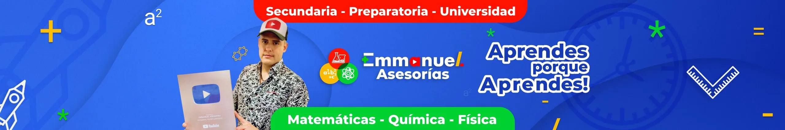 Hola qué onda! Aquí en EMMANUEL ASESORÍAS te explicaré paso a paso, de manera clara, y súper fácil, temas de QUÍMICA, MATEMÁTICAS y FÍSICA. Resolveremos ejercicios, ejemplos y problemas de química, matemáticas y física de manera clara, sencilla, paso a paso y en pocos minutos para que aprendas y pases tus exámenes... Mantente suscrito al canal! Gracias por entrar a #EmmanuelAsesorias. Te dejo mis enlaces a redes sociales: • MIS REDES: https://linktr.ee/emmanuelasesorias • SITIO WEB: www.emmanuelasesorias.com Te comparto mi página web Actualizada y Mejorada! https://emmanuelasesorias.com/niveles/ Aquí tendrás vídeos, cursos, clases, exámenes, ejercicios, formularios y libros para que paso a paso aprendas de matemáticas, química, física y mucho más para nivel secundaria, preparatoria y universidad. Aquí, aprendes porque aprendes!