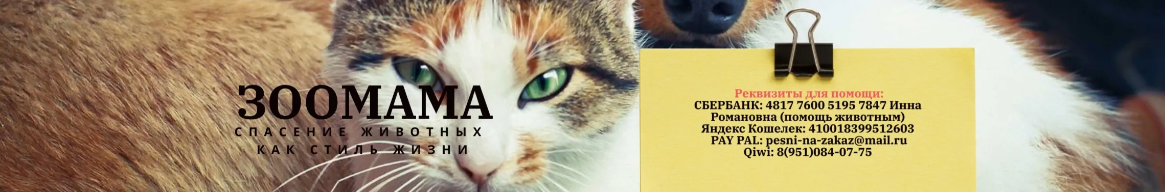 "Зоомама" Яндекс Дзен: https://zen.yandex.ru/zoomama Спасение животных как образ жизни. У канала сотни подопечных, истории которых появляются здесь регулярно. Это собаки, кошки, щенки и котята с тяжелейшими судьбами, которые всем миром мы способны изменить ❤️ Реквизиты для помощи подопечным канала: СБЕРБАНК: 4817 7600 5195 7847 Инна Романовна (помощь животным) Телефон привязан: 8(904)525-53-86 к Сбербанку, Тиньков и ВТБ Ю-мани: 410018399512603