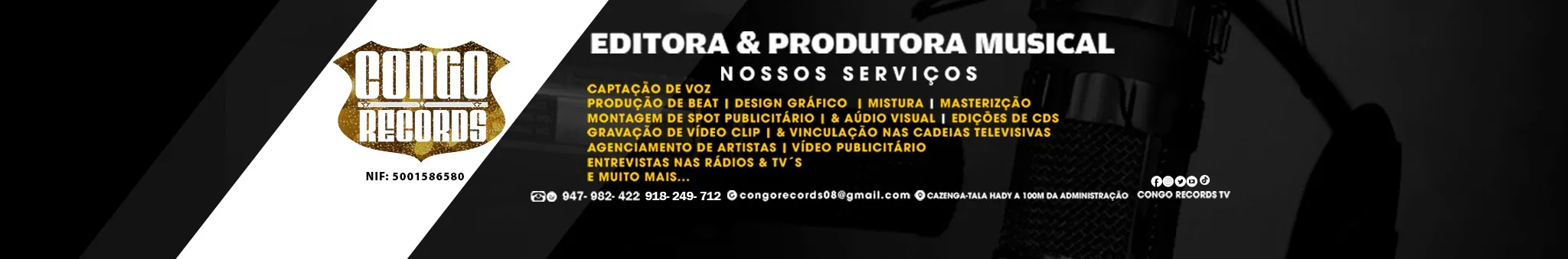 Somos uma Produtora e Editora especializada na área de Produção Musical, Marketing Publicitário, Tradicional e Digital, constituída por jovens empreendedores, cujo o foco principal é: Oferecer serviços de Produção Musical, Conteúdos Publicitários, Design Gráfico, Marketing Tradicional e Digital para Artistas, Micro, Média e Grandes Empresas, com o propósito de mantê-las estáveis no mercado digital e satisfazer as necessidades dos seus públicos. @CongoRecords