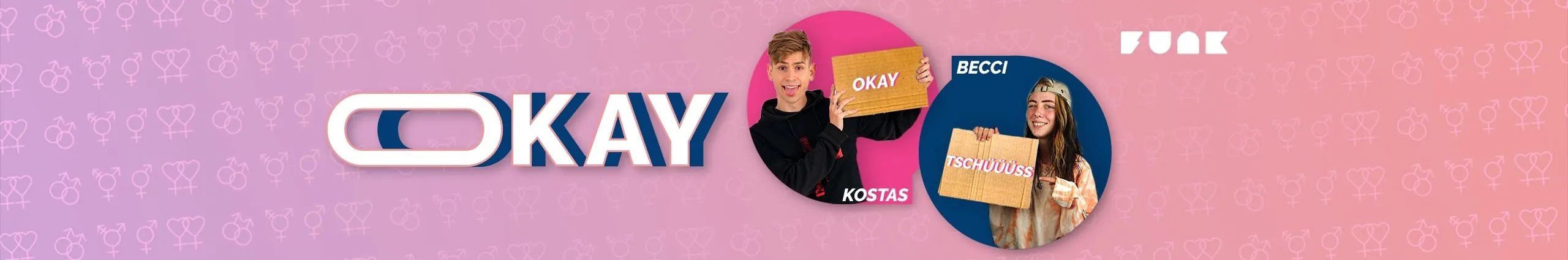 Auf OKAY wurde von euren Geschichten und Erfahrungen von uns, Rebecca Gubitzer, Kostas Kind und Annikazion, erzählt. Von witzig-unangenehmen LGBTQIA+ Alltagssituationen & den unterschiedlichsten Outing-Geschichten Da keine neue Staffel produziert wird, wird es ab dem 28.03.2021 keine neuen Videos geben, bestehende Videos könnt ihr aber immer noch ansehen und kommentieren. Außerdem findet ihr Kostas, Becci und Annika weiterhin auf ihren eigenen Kanälen und es gibt noch ganz viele andere tolle funk Kanäle, die spannende, witzige, interessante Videos für euch drehen, auch mit LGBTQIA-Themen. Das ganze OKAY-Team bedankt sich bei euch, ihr wart und seid eine großartige Community! OKAY wurde produziert von funk. funk ist ein Gemeinschaftsangebot der Arbeitsgemeinschaft der Rundfunkanstalten der Bundesrepublik Deutschland (ARD) und des Zweiten Deutschen Fernsehens (ZDF).