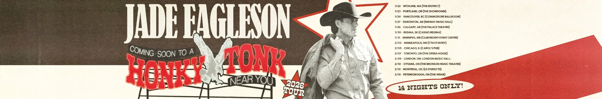 As just 31 years old, Jade Eagleson has made quite the mark on the international country music scene. Boasting 335M+ global streams and 130M+ views on YouTube since the debut of his self-titled album (2020), which holds 4 GOLD and 2 PLATINUM-certified singles as well as the title of Most Globally Streamed Debut Album by an internationally-signed country artist, Jade has also landed 5 #1s at Canadian Country Radio and another three GOLD-certified tracks on his sophomore album and one PLATINUM-certified track and another two GOLD-certified tracks and one PLATINUM-certified track on his third album Do It Anyway. His debut single “Got Your Name On It” (2018) is the first debut single by a Canadian artist to go PLATINUM. These last few years have been unmatched for the Ontario native. Jade kicked oc 2025 with his fourth JUNO nomination and recently won 2024 Album of the Year at the CCMA Awards, after being named the 2023 CCMA Awards Entertainer of the Year and Male Artist of the Year.