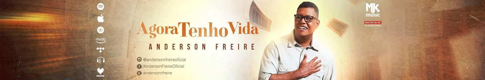 Canal Oficial do Cantor e Compositor Anderson Freire. O cantor Anderson Freire é hoje, sem dúvidas, um dos maiores nomes da música gospel nacional. Com 10 anos de carreira solo e um dos compositores mais requisitados do segmento, possui repertório com vários hits que ultrapassaram fronteiras. Anderson Freire é considerado um dos grandes da música cristã da atualidade. São mais de 270 milhões de views no YouTube nos últimos 12 meses, 257 milhões de plays no Spotify. Mas, sua forma especial de compor e sua interpretação sincera são características que o tornam único. “O talento do Anderson é inegável, mas a unção que Deus derramou sobre a sua vida para compor e interpretar é incomparável.