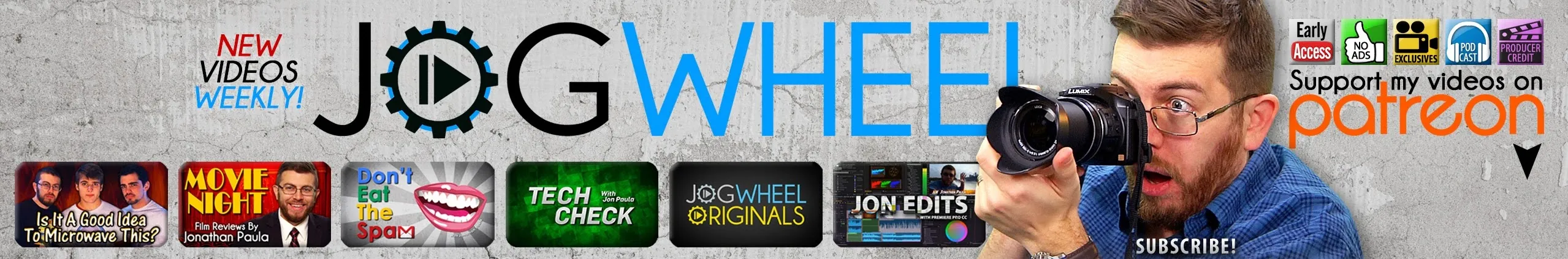 I'm back from my long hiatus! Microwaves, movie reviews, roller coasters, comedy sketches, and more! With popular shows like "Is It A Good Idea To Microwave This?" and "Movie Night", cult-favorites like "Don't Eat The Spam" and "Roller Coaster Commotion", or other programs like "Jogwheel Originals" and "Tech Check - there's something here for everyone. And if not, please check out Jon's second channel. Use the playlists to navigate between shows, and subscribe for more! Born in February 1986, Jonathan Paula is a professional videographer and co-creator of "Is It A Good Idea To Microwave This?" and founder of Jogwheel, a new media production company that specializes in web video. Jon graduated from Emerson College in 2008 with a degree in Television Production / Radio Broadcasting. He lives in New Hampshire with his wife Rebecca and two daughters.