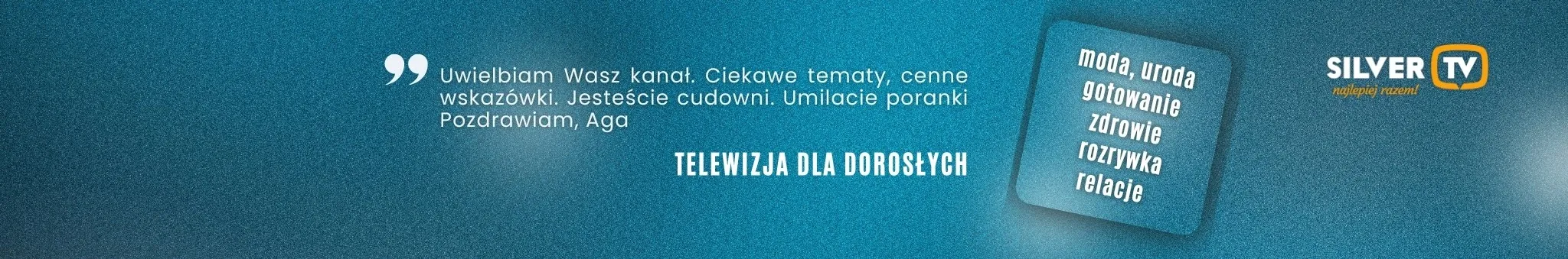 Największy kanał dla 50+. Największa społeczność 50+ FB 700 K Jeżeli Twojej firmie zależy na dotarciu do pokolenia Silver napisz tutaj: biznes( @) silvertv.pl