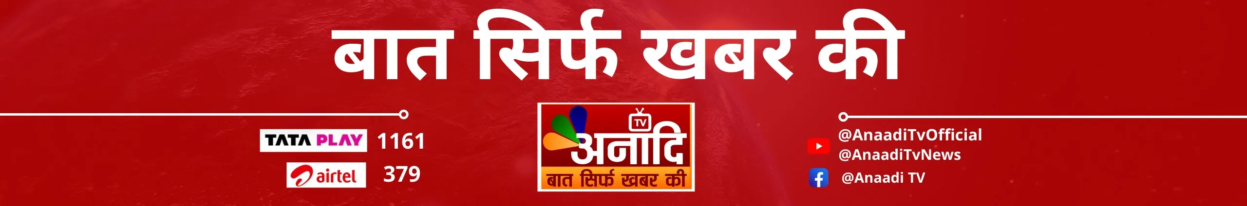 Anaadi TV is a 24-hour Hindi Leading news channel. The vision of the channel is "Baat Sirf Khabar Ki".Best defined as a responsible channel with a fair and balanced approach that combines prompt reporting with insightful analysis of news Anaadi TV popular shows revolve around news, politics, economy, sports, panel discussions with eminent personalities. अनादि TV भारत का सबसे विश्वसनीय हिंदी न्यूज़ चैनल है! अनादि TV पर आप पॉलिटिक्स, बिजनेस, स्पोर्ट्स और बॉलीवुड से जुड़ी ताज़ा ख़बरें देख सकते हैं, और देश दुनिया की बड़ी खबरों के लिए बने रहिये अनादि TV पर और शेयर करिये अपने दोस्तों और परिवार से !
