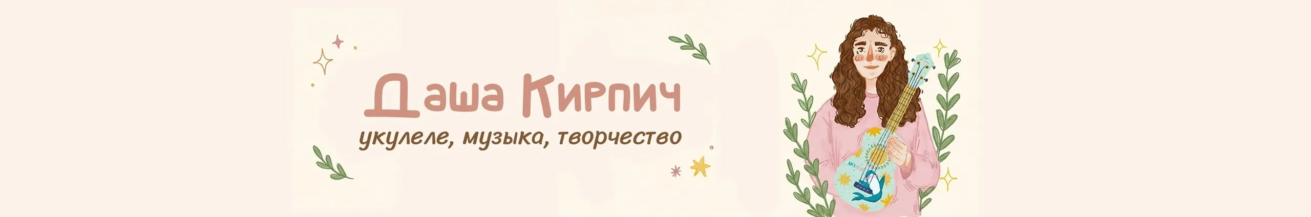 Привет ребята-опята! ✋🏻 Меня зовут Даря, мне 26 лет. Живу в Питере, обожаю сериал "Друзья", свинку Пеппу и игру "The Last of us". Но и конечно же, мое самое главное увлечение - укулеле. Я преподавательницы музыки, видеоблоггерка и укулеле-инфлюенсерка. 🦈За пределами интернета, выпустила подписную укулеле "Акулеле" и аксессуары к ней 📚 А для комфортного и системативного обучения написала интерактивные методички и уку-книгу На своем канале я снимаю музыкальные обучающие ролики, а если тебе хочется просто посмеяться и отдохнуть от дел, то есть влоговый формат "моменты жизни".