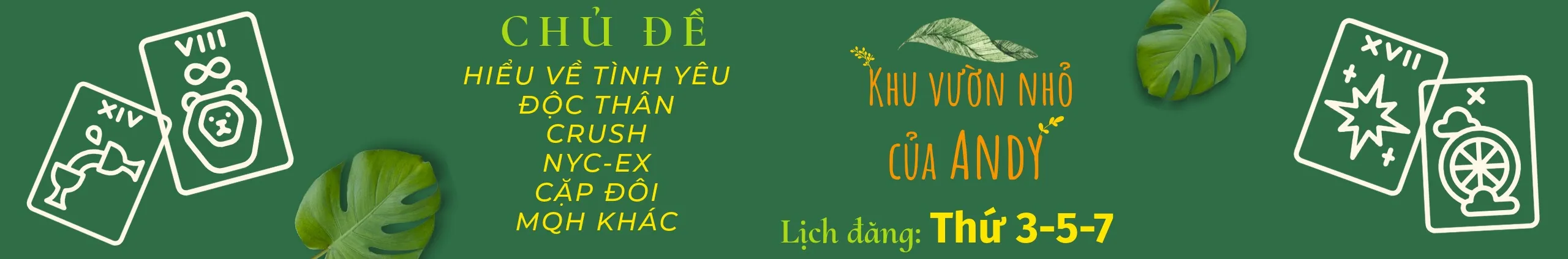 Mình là Andy, một Tarot reader thuộc thế hệ 8x. “Tarot bánh quy” & “Khu vườn nhỏ của Andy” là hai kênh Youtube về Tarot do mình thực hiện. 🍓Nếu bạn thích xem những video về dự đoán tình cảm, công việc, thời vận theo tuần/tháng cũng như những video về phát triển bản thân. Hãy ghé thăm “Tarot bánh quy”. https://www.youtube.com/@tarotbanhquy 🌿Nếu bạn thích những video xoay quanh chủ đề tình yêu. Hãy dạo quanh “Khu vườn nhỏ của Andy”. https://www.youtube.com/@khuvuonnhocuaandy 🤝Dành cho đối tác - công việc: Agency/Brand quan tâm booking quảng cáo, vui lòng gửi email với nội dung: + Yêu cầu công việc (Brief) + Ngân sách dự kiến (Budget) Kênh sẽ phản hồi emails khi có đủ thông tin để tiết kiệm thời gian cho đôi bên. 🎉Ủng hộ mình qua: STK 1018483541 – Cao Đức Tấn Phát – Vietcombank – CN Nam Sài Gòn Hoặc Paypal theo link sau: https://www.paypal.me/tbqandygarden với email: [email protected] Hoặc Momo theo link sau: https://me.momo.vn/TBQANDYGARDEN
