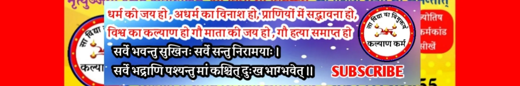 प्रिय दर्शकों कल्याण कर्म यूट्यूब चैनल पर आप सभी का बहुत-बहुत स्वागत है । हमारा पूर्ण प्रयास रहेगा कि हम आपको आसानी से कर्मकांड ज्योतिष शास्त्र के विषय में अच्छे प्रकार से आपको बता सके आपको सिखा सके आपको पढ़ा सकें । हमारे चैनल के माध्यम से आप आसानी से ज्योतिष एवं कर्मकांड शीघ्रता से सीख सकते हैं अगर आप चाहते हैं कि आप आसानी से सीखते रहें तो हमारे वीडियो देखते रहे और चैनल को जरूर सब्सक्राइब करें ।। जय श्री राम ।।