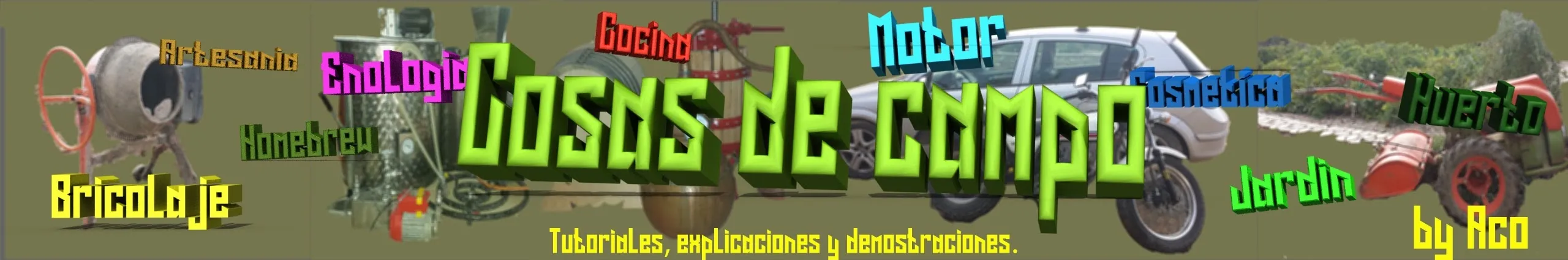 Videos practicos al estilo 'Como se hace' y explicando detalladamente el porque sobre: Jardineria y huerto (Cultivo del tomate, patata, bisalto, ajo, plantas de jardín...tratamientos de plagas y enfermedades, identificacion de arboles, malas hiebas, decoracion en el jardín...), Cria de gallinas (Como hacer un gallinero, hacer alimento para gallinas, hacer bebedero automatico...) Bricolaje (Hacer senderos para el jardín, fregadero con encimera de obra, barbaco circular, pintar bañera, tratar vigas de madera contra la carcoma...). Enologia, elaboracion de cerveza, vino y licores artesanalmente, asi como la construccion del equipo. Algunos proyectos de electronica e informatica, con arduino y otros dispositivos. Cortadora, Grabadora de tubo de CO2 LASER de 40W modelo K40 (Modificaciones y mejoras asi como proyectos). Elaboracion del Jabones artesanos (Hacer jabon base de glicerina transparente, jabon de calendula...) Mecanica (Cambio de aceite...) Cocina. Y mas...